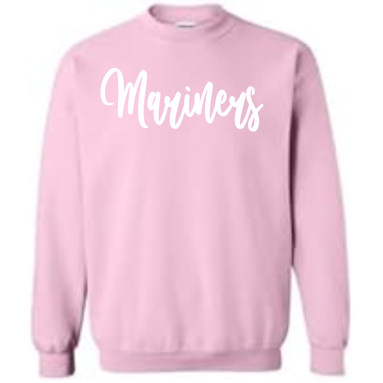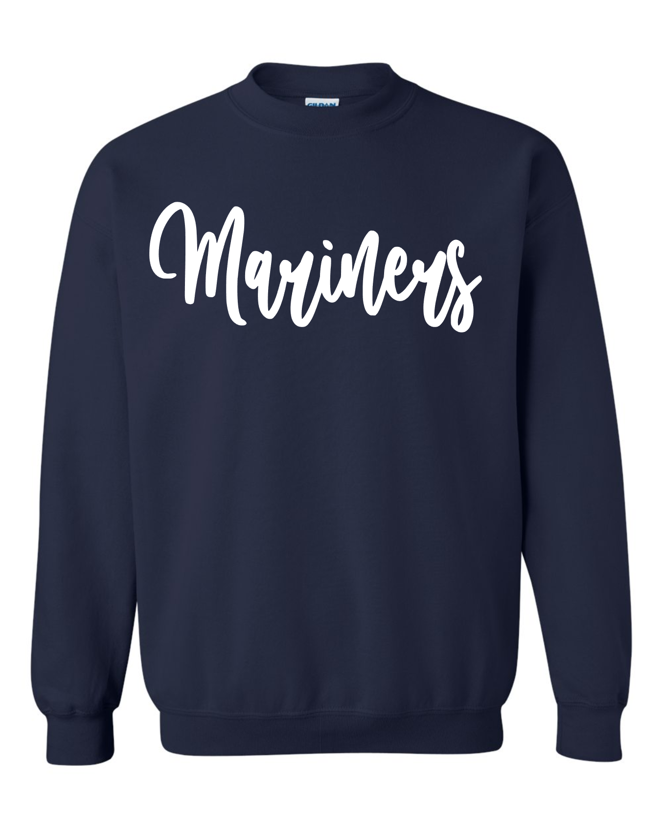 Adult Unisex Sizing Crew Neck Sweatshirt with Centered "Mariners Puff" Logo in Puff 3D Print. Dry-Blend 50/50 Cotton/Poly Fleece. *COLOR OPTIONS AVAILABLE- SEE PHOTOS!