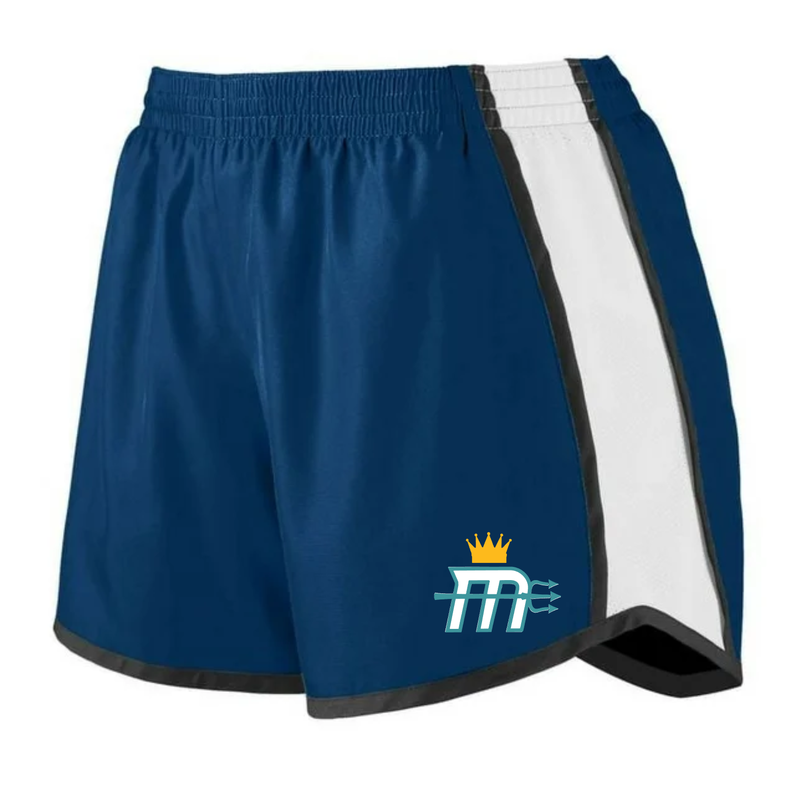 Women and Girl Sizing- Navy Blue / Black / White Pulse Team Shorts with "Mariners M" Logo on leg. 4" Inseam, inside key pocket, 100% Polyester micropoly shell with 100% polyester wicking crepe lining.